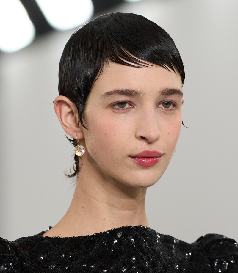 يمكنك أيضًا التألق بقصة شعر قصيرة جدًا بأسلوب مدرج، مستوحاة من عارضة دار “فيكتور آند رولف” في أسبوع الموضة الباريسي لموسم ربيع وصيف 2024. تعد هذه القصة من القصات الرائجة التي تبرز جمال ملامح وجهك وتجعلك تبدين أصغر سنًا. لا تترددي في اعتمادها، خاصة إذا كان شعرك ناعمًا.